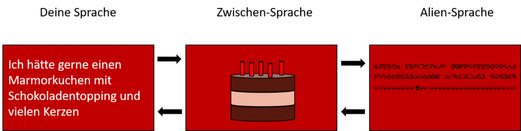 So wie du und der außerirdische Bäcker nicht die gleiche Sprache sprechen, verhält es sich auch mit dir und einem Computer. Vereinfacht ausgedrückt kann dieser nur Abfolgen von Einsen und Nullen verstehen, während du womöglich einige Sprachen, wie Deutsch, Englisch oder Spanisch sprichst.
